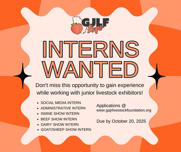 The GJLF is seeking qualified students to serve as interns during the GJLF Expo set for December 10-13, 2025. Internships are volunteered based positions that will allow college students to gain knowledge and experience with livestock show coordination, social media exposure and general administration roles.